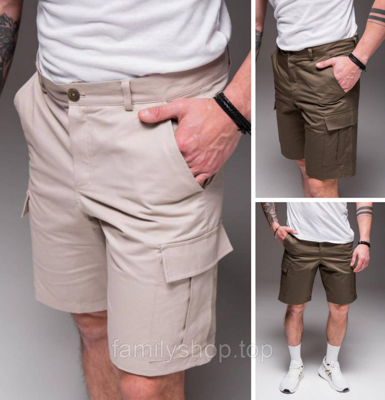 Шорти карго чоловічі котонові з накладними кишенями з боків якісні, тактичні, бежеві, хакі